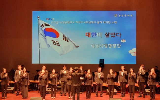 “대한이 살았다”는 노래는 서대문 형무소 8호 감방의 여성 독립운동가들이 불렀던 노래로 성남시립합창단이 편곡해 불렀다.
