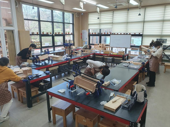 요일별 △ 생활소품 23종 만들기(200회) △ 목공 기초반(150회) △ 초등 목공 교육(20회) △ 야외데크 목공 놀이(50회) 등을 운영한다.