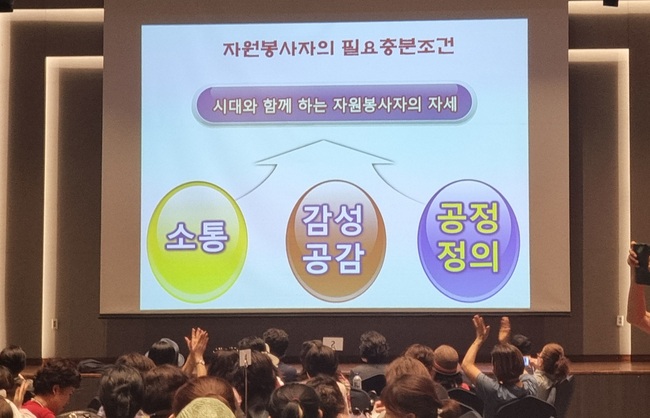 조정호 강사와 함께한 내 인생의 터닝포인트! ‘자원봉사자로 살아가기’ 90분간의 전문교육시간, 질문에 답하며 실전훈련을 함께한 봉사자들, 유쾌·통쾌한 시간이라며 함성과 박수를 보냈다.