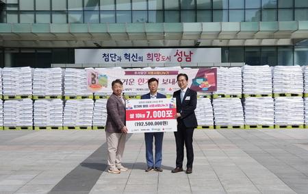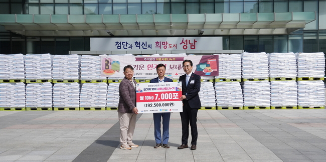 받은 쌀은 성남시 50개 동 행정복지센터를 통해 기초생활보장수급 독거노인과 가정위탁아동 가구에 1포대씩 전달하기로 했다.