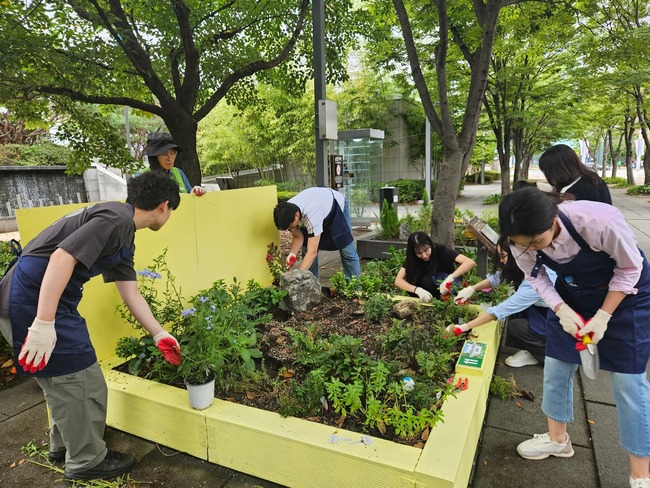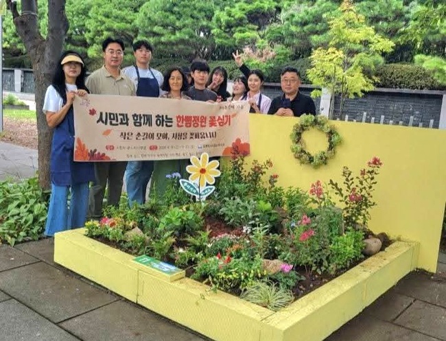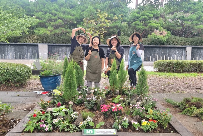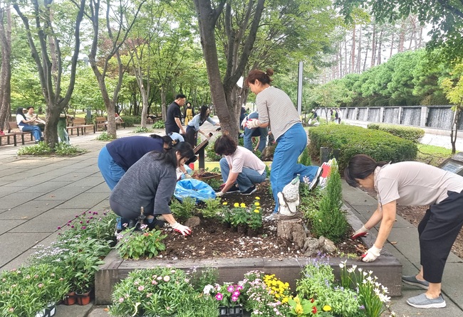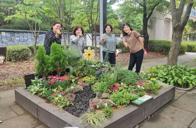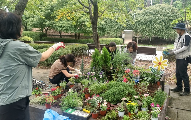 어느새 성남시청 느티나무 오솔길 한 뼘 정원이 가을꽃으로 단장됐다. 주말을 이용해 이틀 동안 공무원과 시민 60명이 구절초, 해피블루, 천일홍, 국화 등 가을 초화류 50여 종 1,442본의 가을꽃을 심었다.