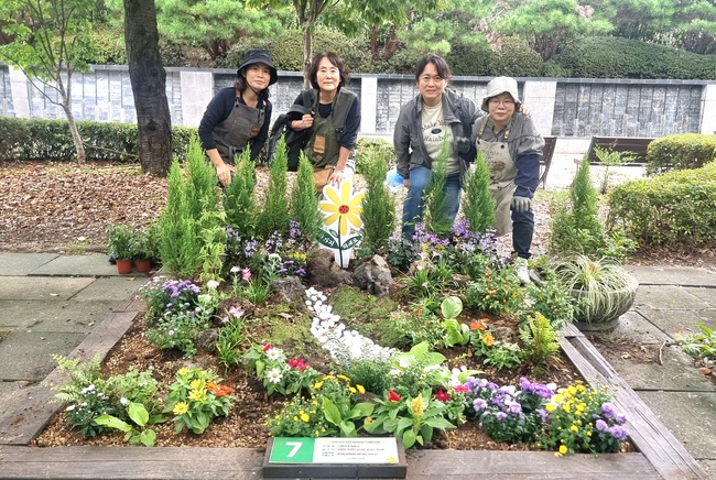 ‘봄·여름·가을·겨울 당신과 늘 함께하겠습니다’라는 작품을 소개하는 5번 정원 유숙영 씨는 “2024 성남 가드너 심화반(김태선, 김기례, 한명희, 이강옥)에서 함께 강의를 듣고, 성남시 한 뼘 정원을 가꾸는 봉사를 하니 보람 있습니다. 시민의 한 사람으로 꽃을 심는 일이 즐겁습니다. 기회를 주신 성남시에 감사드려요”라고 인사했다.