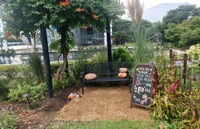 호박에 그림을 그리고 벽 장식을 설치해 가을 포토존도 만들었다. 녹지과 조수연 조경팀장, 이정은 주무관은 14개 정원을 살피느라 바쁜 걸음을 했다. 정원 코디네이터는 시민들을 도왔다.
