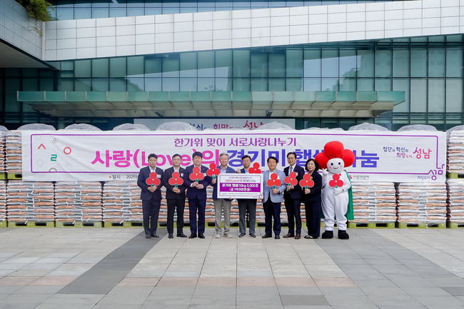 시는 이날 오전 11시 시청광장에서 신상진 성남시장과 양흥식 농협 성남시지부장, 김효진 경기 사회복지공동모금회 사무처장 등이 참석한 가운데 ‘2025년 한가위 맞이 서로 사랑 나누기 쌀 전달식’을 했다.