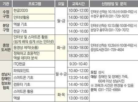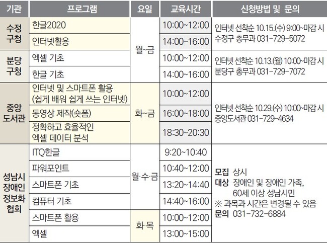 ※ 인터넷 선착순 접수 성남시 배움숲( https://sugang.seongnam.go.kr ) *조기 마감될 수 있음