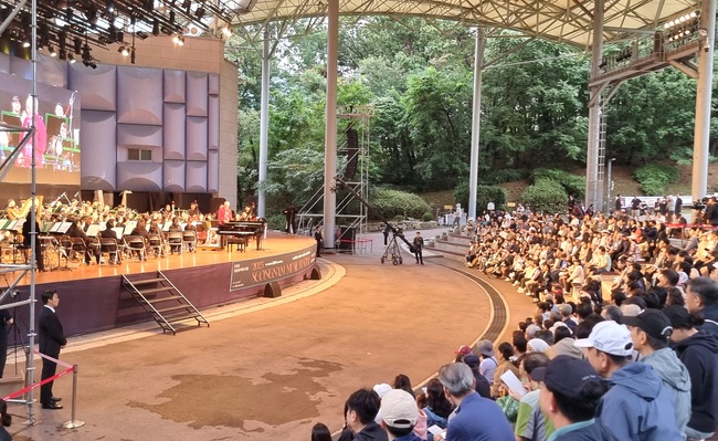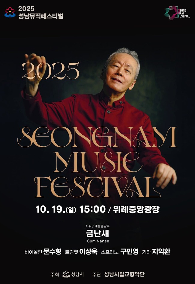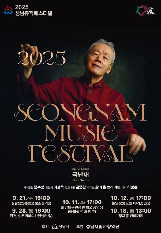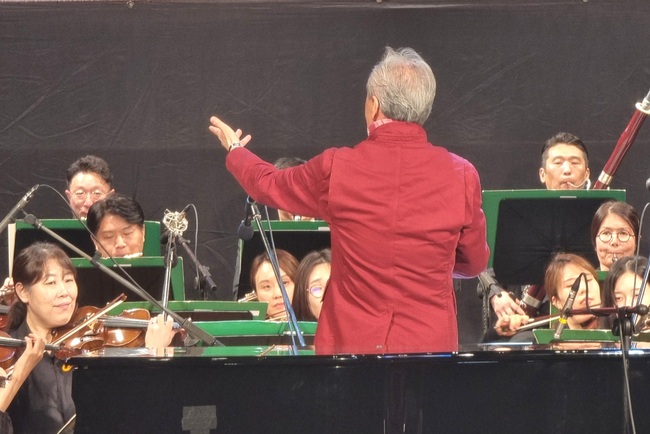 ‘2025 성남 뮤직 페스티벌’ 4번째 공연이 중앙공원 야외공연장에서 가을 저녁 문을 열었다. 체크무늬 목도리를 한 금난새 지휘자의 모습이 보이자 관객석에서는 환호와 함께 금난새 지휘자와 연주자들을 환영했다.