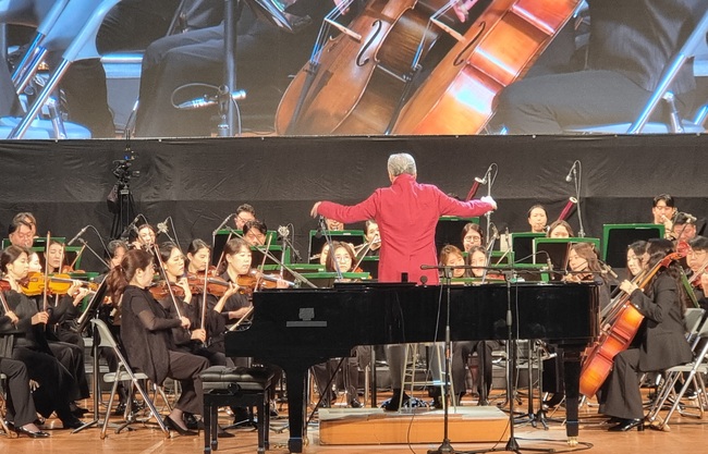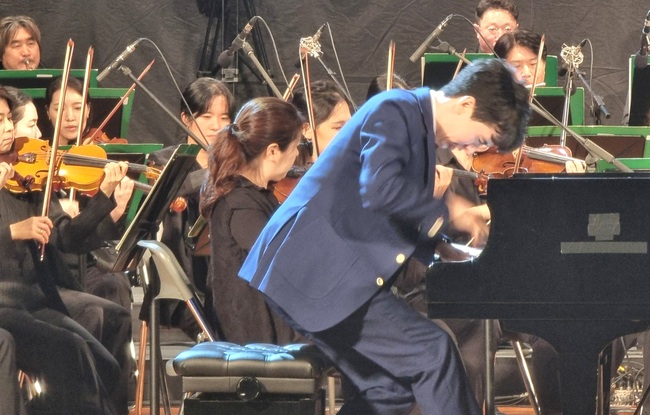 ‘피아노협주곡 제2번-3악장(라흐마니노프)’을 연주하는 피아니스트 찰리 올 브라이트는 온몸이 튀어 오를 정도로 열정의 연주 무대를 펼쳤다. 열정적인 연주에 관객들은 감동의 기립박수를 보냈다.