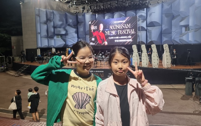 가족들과 공연을 보러온 최다미, 한세련 어린이는 “친구와 음악을 들으며 간식을 먹었어요. 작년에도 금난새 지휘자님을 봤기 때문에 이제 두 번째예요. 정말 좋아요”라며 밝은 표정을 담았다.
