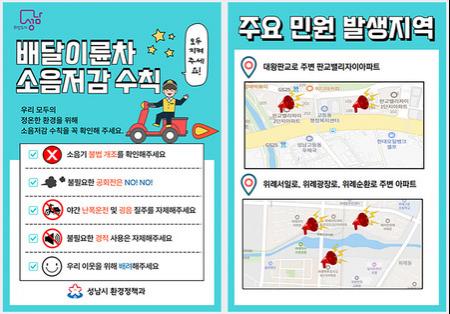 배달 라이더들에게 이륜차 소음 저감 수칙, 성남지역 주요 이동소음 민원 발생지 등의 내용을 담은 리플릿도 나눠준다.