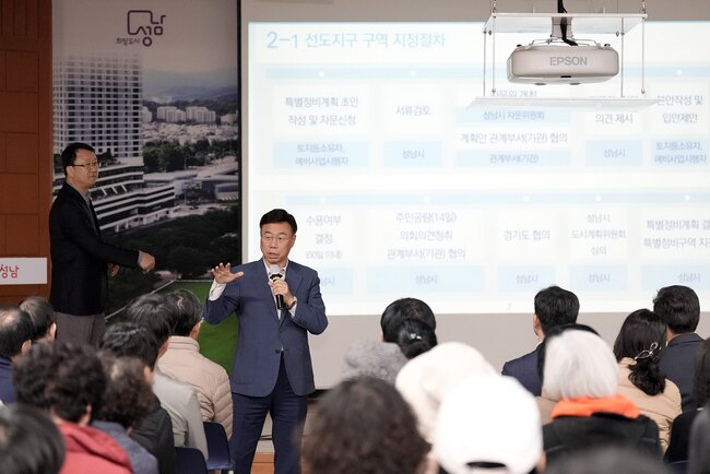 신상진 성남시장은 30일 오후 4시 30분 분당구청 대회의실에서 개최된 ‘분당 특별정비예정구역 권역별 주민설명회(1차-선도지구)’에 참석해 분당 재건축 사업 추진 의지를 밝혔다.