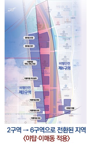 ➀ 비행안전구역 변경(2→6구역)(2025.9.29. 고시) ⇒ 야탑·이매 일부, 건축 가능 높이 15~63미터 상승↑ 예상 추가로 5~21층 건축 가능(층높이 3미터 기준) ➁ 지표면 높이 산정 기준 변경(2025.8.26. 시행령 개정) ⇒ 원도심 경사 지역 재개발 세대수·사업성 증가 기대