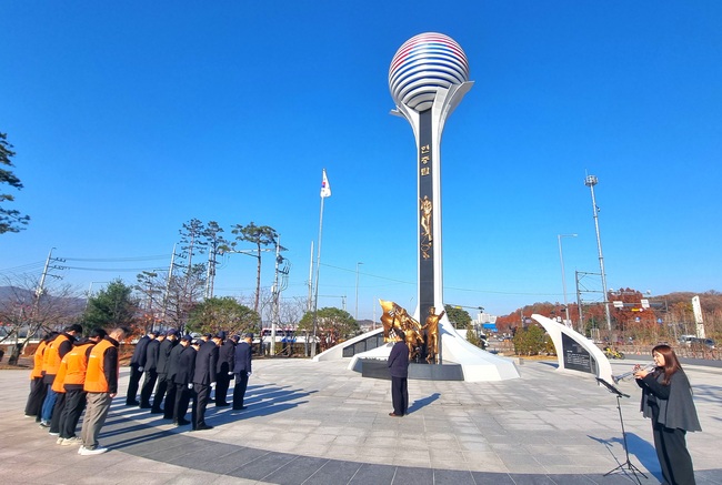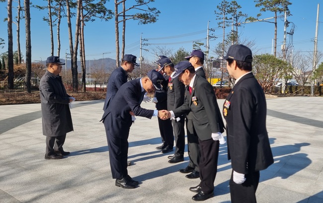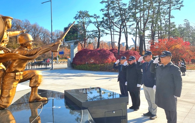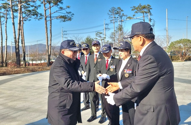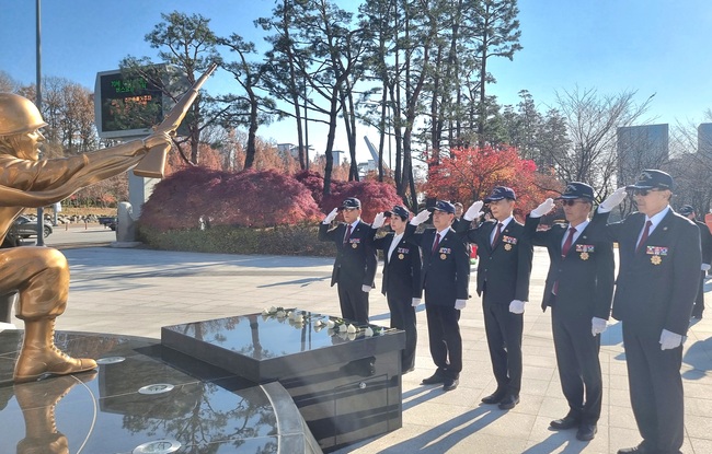 11월 28일 현충탑 경내에 전인범(전 특전사령관) 장군이 박흥식(대한민국 무공수훈자회 성남지회) 회장과 회원들을 만나 힘있게 손을 맞잡았다. 이 자리에는 김원덕(무공수훈자회 부설 유족회) 회장과 장현자(성남시자원봉사센터) 센터장과 직원들이 함께했다.