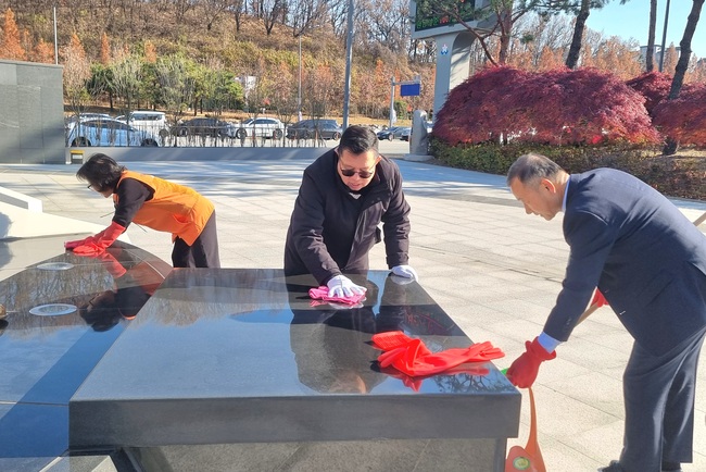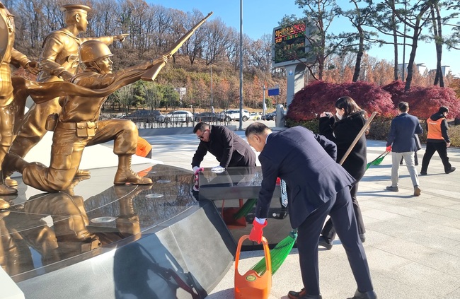 이어 전인범 장군을 비롯해 신규로 위촉된 성남시 안보자문위원인 김해석, 박주경, 이창영 장군이 빗자루와 물걸레를 들고 현충탑 청소를 시작했다.