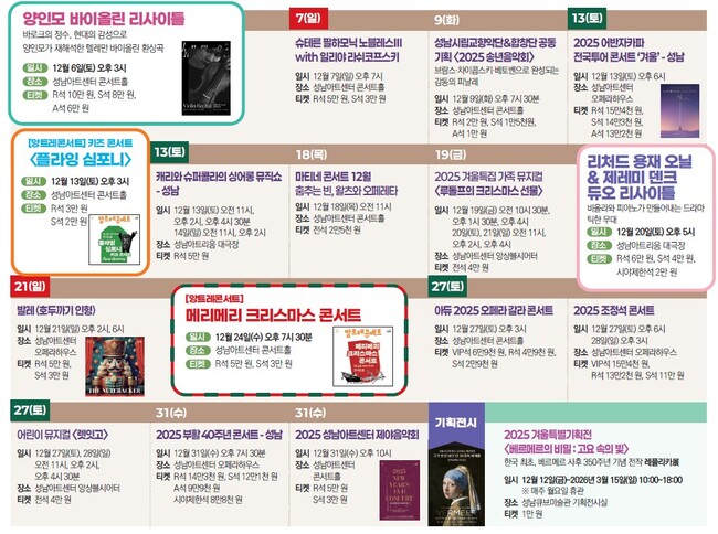 12월 성남문화재단 성남아트센터•성남아트리움 공연 /전시