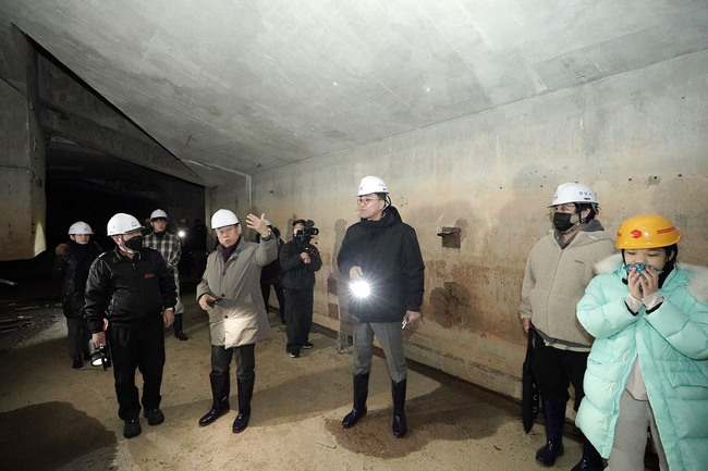 이들은 4개 그룹으로 나뉘어 성남물빛정원 관리동에서부터 침사지까지 이어지는 지하공동구 112m 구간을 30분 동안 탐사했다.