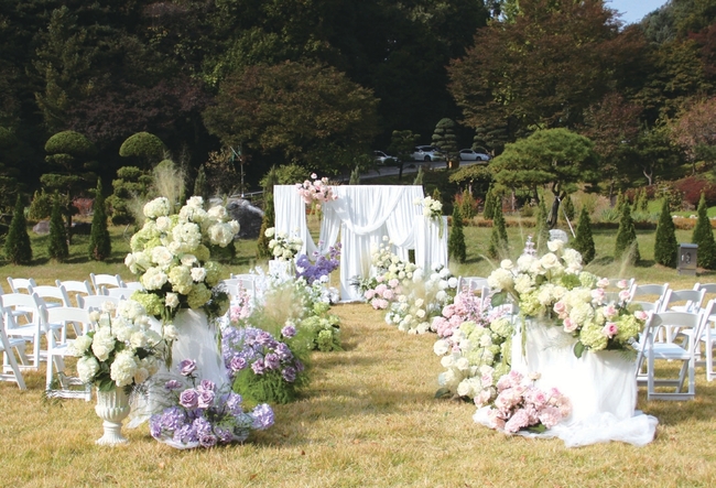 ❶ 성남시청공원 벽천분수(중원구 여수동) ❷ 새마을운동중앙연수원 돌뜰정원(분당구 율동) ※ 대관료 32만 원 ❸ 성남물빛정원 하늘마당, 잔디마당(분당구 구미동) ※ 하반기 예식부터 예약 가능