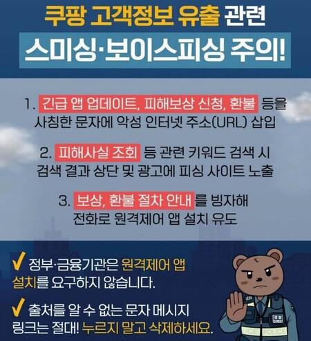 쿠팡 고객정보 유출 관련 스미싱 보이스피싱 주의!