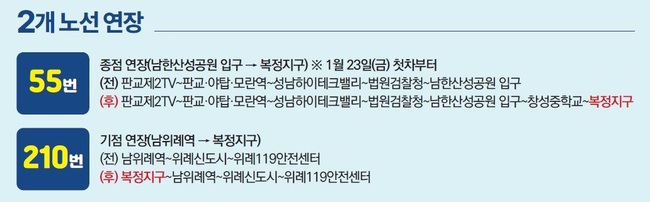 성남복정지구 시내버스 5개 노선(63대 버스 운행) 1월 개통합니다