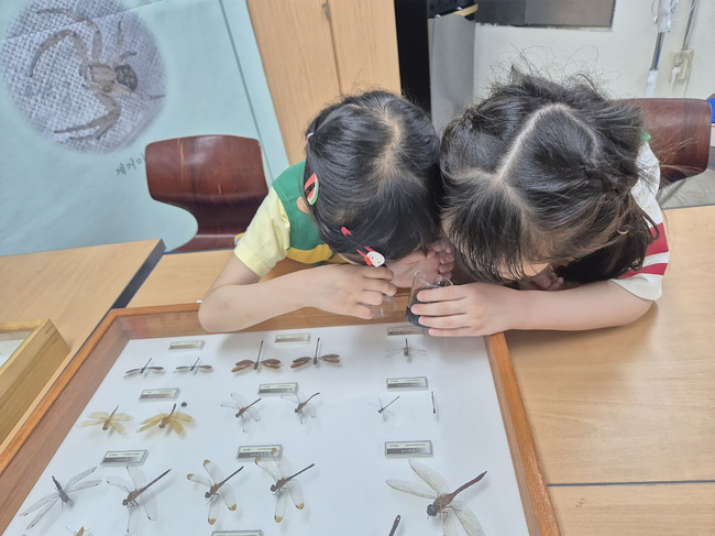 양지동 행정복지센터 4층에 있는 환경교육관에서 루페(확대경)를 활용한 곤충·식물 관찰, 잠자리 눈 목걸이 만들기 등을 진행한다. 유아 눈높이에 맞춘 놀이 중심 수업을 통해 생태계의 소중함을 자연스럽게 익힐 수 있도록 돕는다.