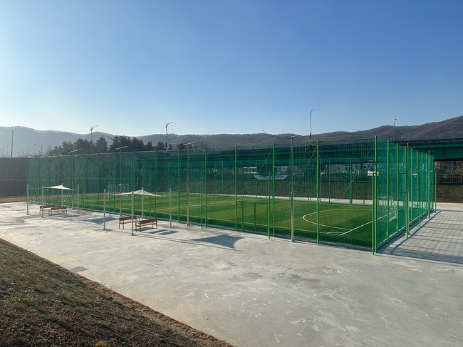 성남시는 체육시설 확충 사업의 하나로 대장동 666번지 저류지 내 유휴 부지 총 9439㎡에 풋살장 1면과 농구장 2면, 다목적광장을 조성했다고 13일 밝혔다.