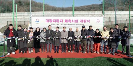 대장저류지 체육시설 개장식은 이날(13일) 오후 3시 신상진 성남시장과 안철수 국회의원 등 100명이 참석한 가운데 현장에서 열렸다.