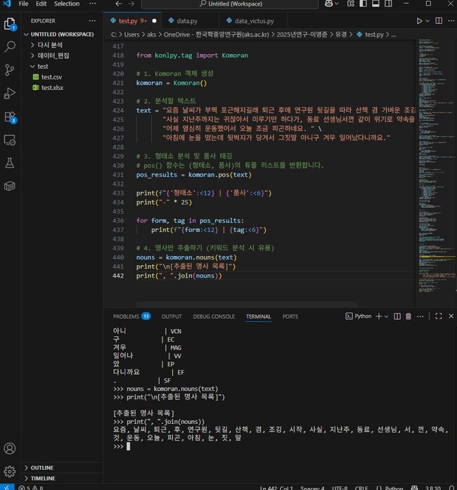 현재는 형태소 분석 방법도 고도화되어서 단어를 문자 단위로 쪼개어 빠르고 효율적으로 처리하고 있다. 사전에 없는 단어라도 분석이 가능해진 것이다. 그럼에도 더 정밀한 언어 모델을 만들기 위해서는 조사나 접사, 어미들이 발달한 교착어로서의 한국어에 대한 고민이 많이 필요해 보인다.