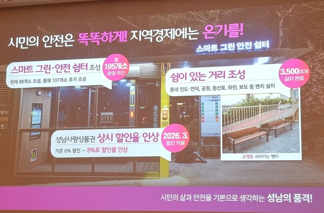 시민의 삶과 안전을 생각하는 성남, 깨끗한 환경을 준비하는 성남의 약속과 정직한 발전을 멈추지 않고 이어가겠다는 약속으로 2026년 성남시 시정운영 방향 설명이 끝나자 주민들은 큰 박수와 환호를 보냈다.