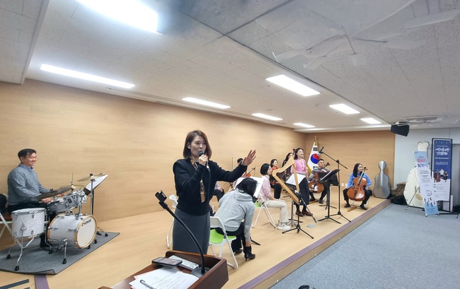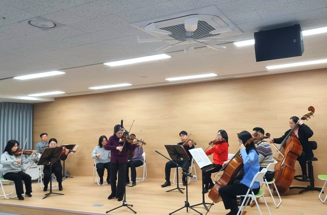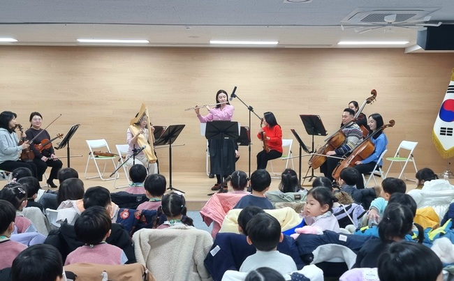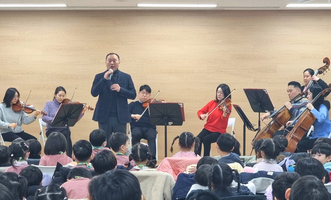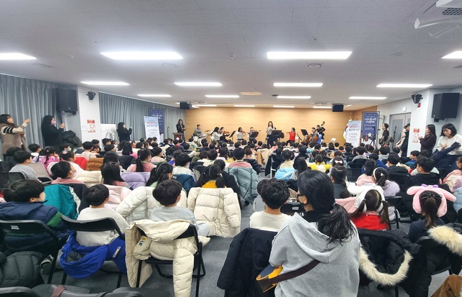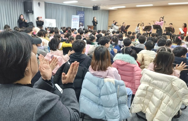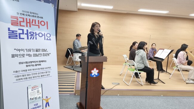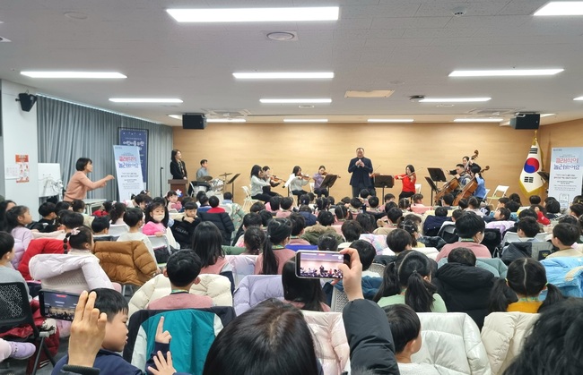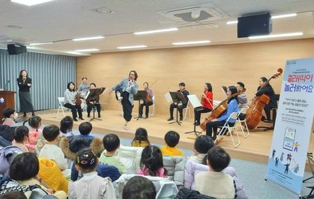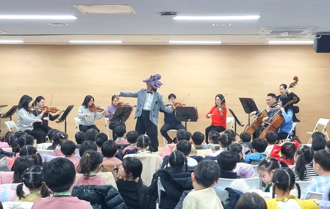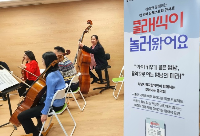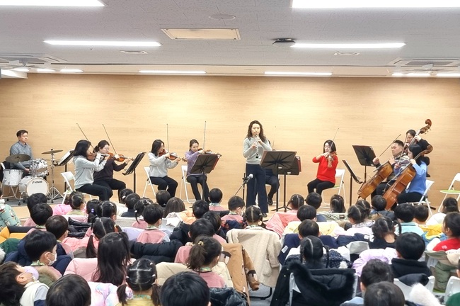 ‘아이 키우기 좋은 성남, 음악으로 여는 성남의 미래’를 위해 성남시립교향악단이 찾아가는 음악회를 열고 있다.