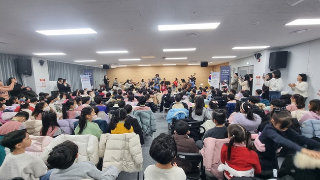 비올라(박다영 단원) 등 악기 하나하나 소개할 때마다 악기마다 다른 아름다운 소리로 동요가 연주됐다. 온몸으로 악기를 연주하듯 음악에 몸을 맡기는 어린이가 있어 모두를 미소 짓게 했다.