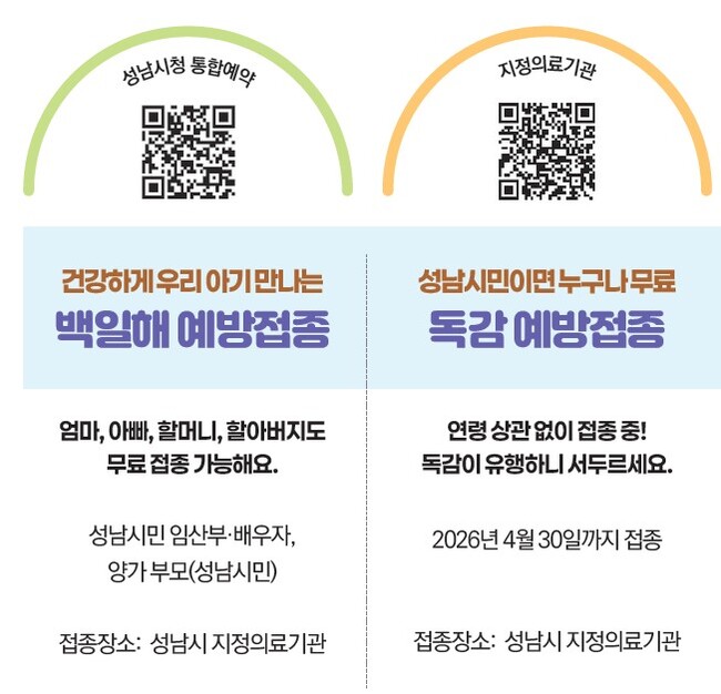 성남시민 무료 예방접종, 아프기 전, 미리 맞으세요!