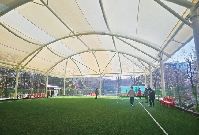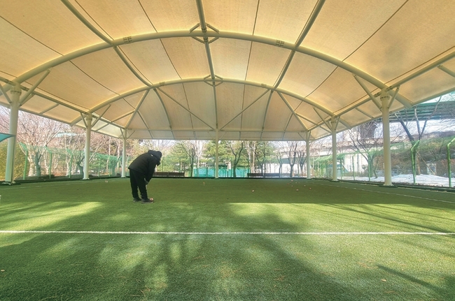 주택근린공원 게이트볼장 “눈 오면 치우기도 힘들고 바람 불고 비 오면 게임하고 싶어도 못했어요. 사시사철 마음 놓고 여가활동 할 수 있어서 참 좋아요. 여름철에는 햇빛을 차단해 주니 두루두루 장점이 많아요.” - 남호순(70·정자3동)