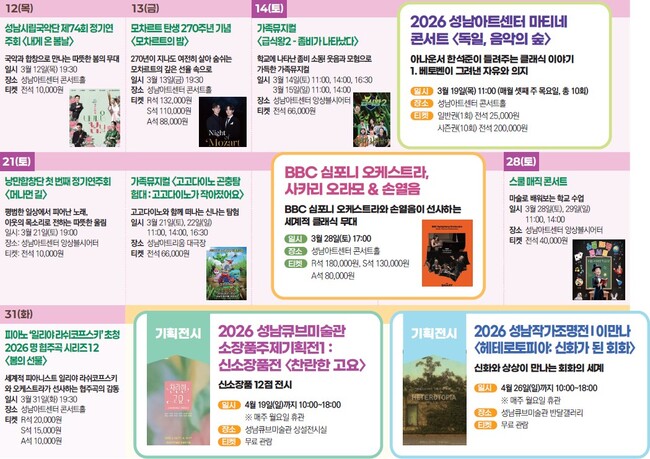 3월 성남문화재단 성남아트센터•성남아트리움 공연/전시