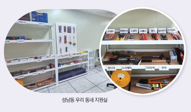 내용 • 공구 대여(모든 주민) ▶ 대여품목: 드라이버, 전동드릴, 망치, 스패너 등 ▶ 대여기간: 3일 • 취약계층에 대해서는 생활 편의 서비스 해드립니다.(10KG 이내 짐 옮기기, 간단한 집수리) • 안전사고 예방 위한 위험 요인 순찰 및 신고