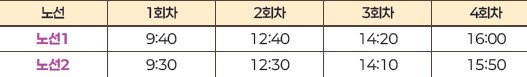 운행시간 평일 하루 4회 (주말과 공휴일은 운행하지 않음)