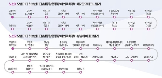 운행노선 노선1 모빌리티 허브센터(성남종합운동장 야외주차장)~제2판교테크노밸리