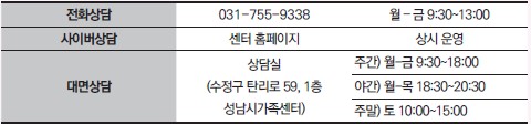 문의 성남시가족센터 가족성장팀 031-756-9327(내선 1번)