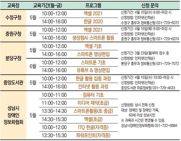 인터넷 신청: 성남시 배움숲( https://sugang.seongnam.go.kr ).