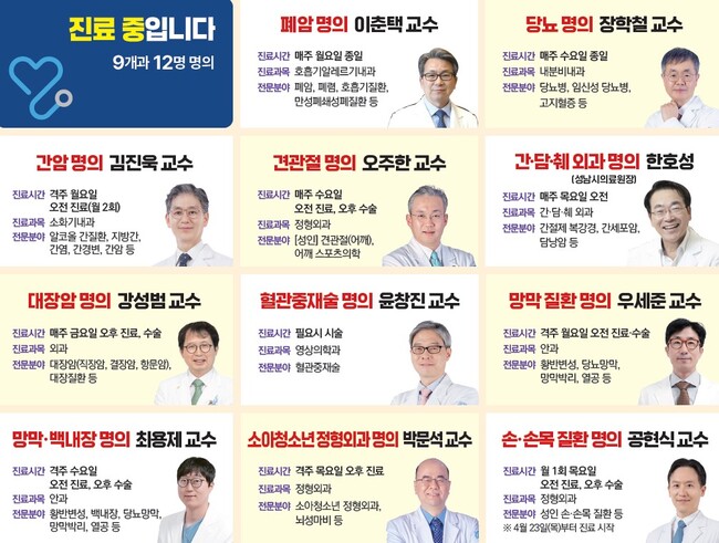진료예약 성남시의료원 홈페이지, 전화 031-738-7000 ※ 외래 진료 일정은 진료과의 사정에 따라 변경될 수 있습니다.