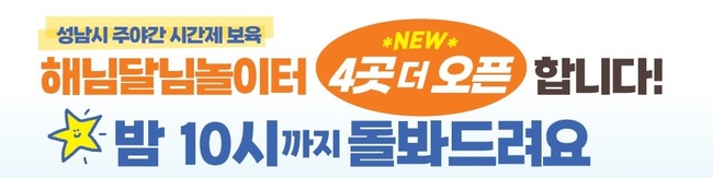 이용대상 (주간) 6개월~36개월 미만, (야간) 6개월~취학 전 영유아 ※ 성남시 거주 영유아 가정(조부모·위탁가정 포함) 성남시 재직 영유아 가정