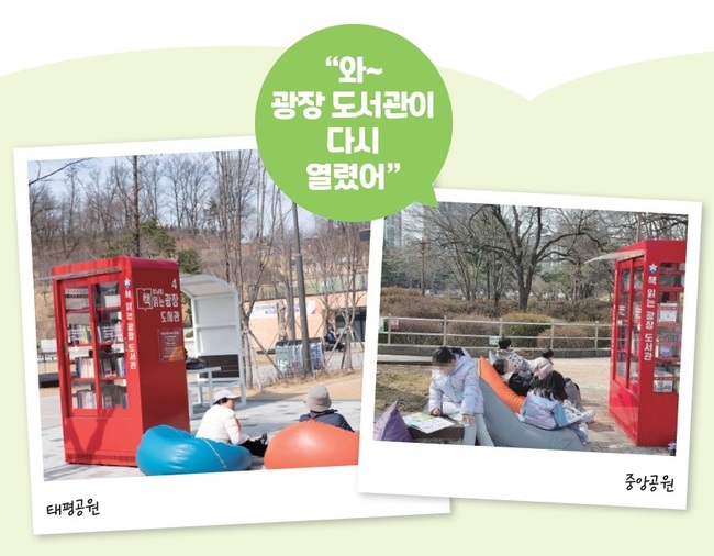 “아이와 배드민턴 치러 태평공원에 자주 옵니다. 책장과 의자가 있으니 운동하다 쉴 때 책 읽기 좋아요. 며칠 전 새 책들로 가득 찼는데 짧게 읽을 수 있는 시집이 많았으면 좋겠어요. ” - 김윤희(태평동)