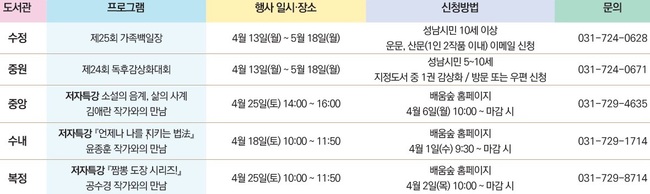도서관 주간 행사 – 우리 동네 도서관에서는
