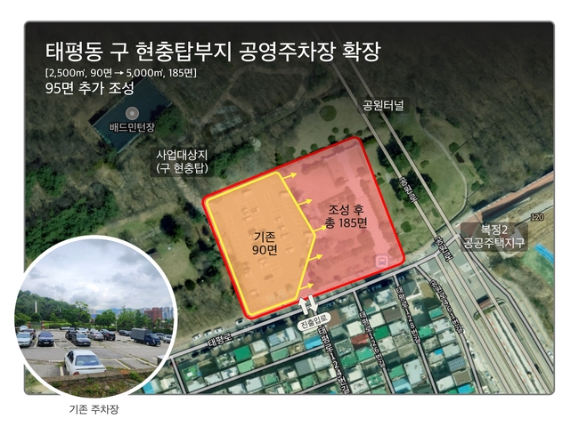해당 사업은 총사업비 16억 원을 투입해 기존 주차장 90면을 정비하고 95면을 추가 조성해 총 185면 규모의 지평식 주차장을 조성하는 사업으로, 2026년 8월 준공을 목표로 추진 중이다.