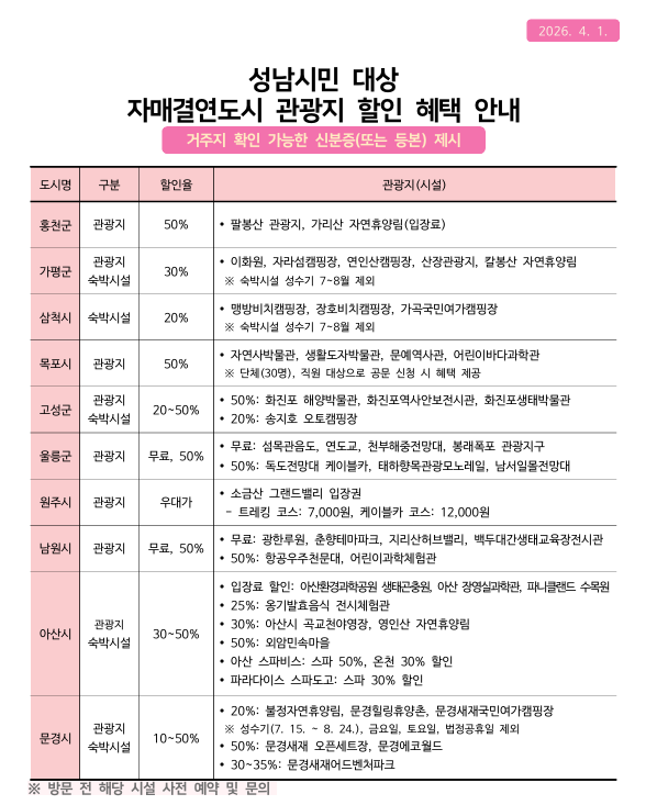 자매결연도시 성남시민 혜택