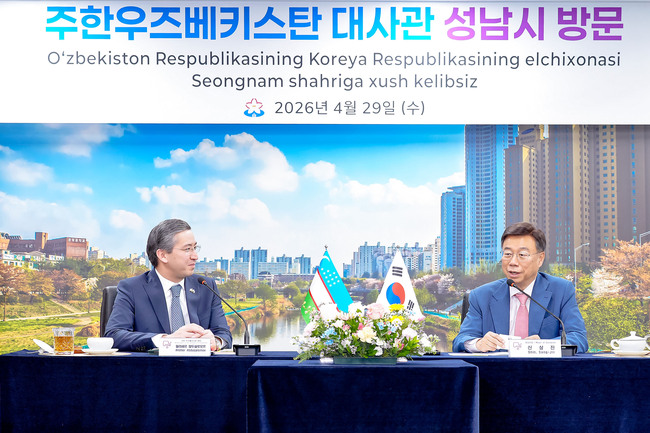 신상진 성남시장은 29일 시청에서 알리셰르 압둘살로모프 주한 우즈베키스탄 대사를 만나 양측 간 협력 확대 방안을 논의했다.
